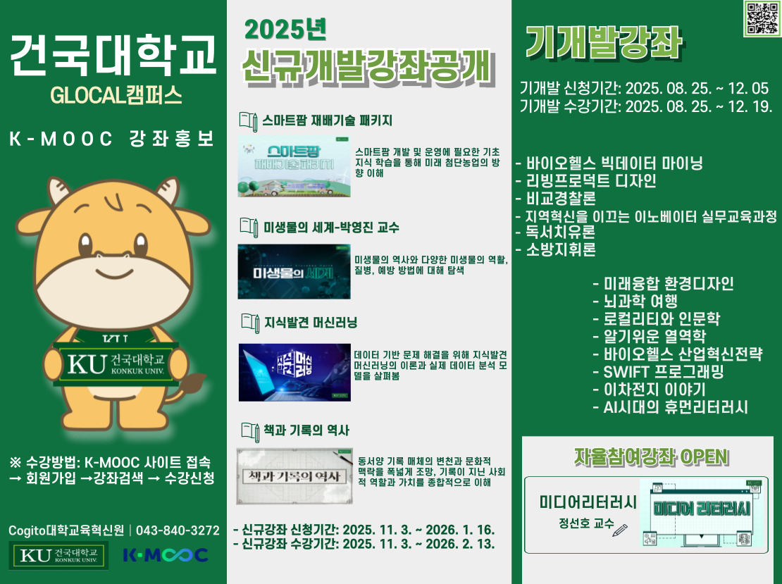 2025학년도 한국형 온라인 공개강좌(K-MOOC)수강 안내(건국대학교(글로..