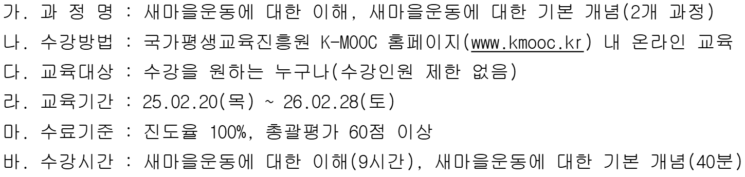 2025학년도 한국형 온라인 공개강좌(K-MOOC)수강 안내(새마을재단)