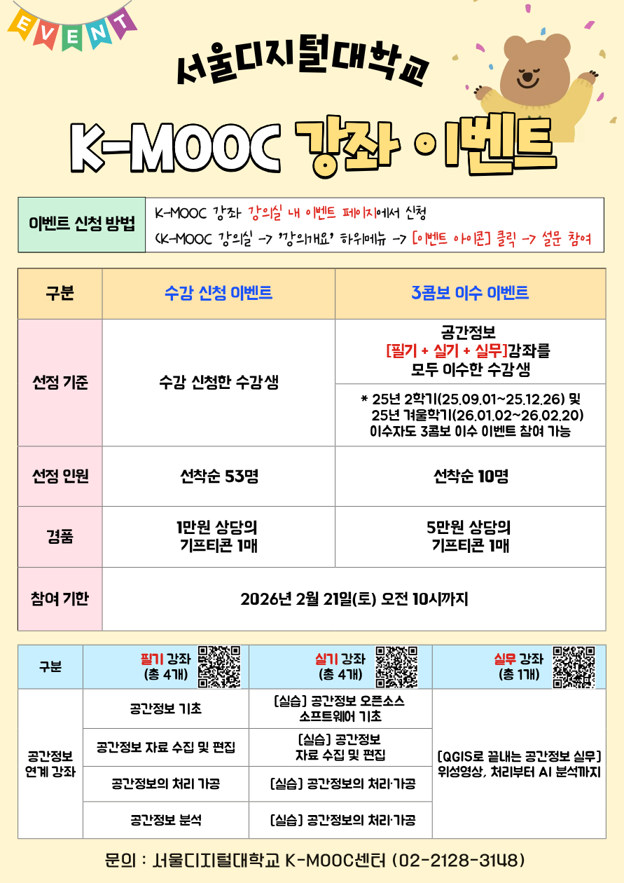 2025학년도 한국형 온라인 공개강좌(K-MOOC)수강 안내(서울디지털대학교..