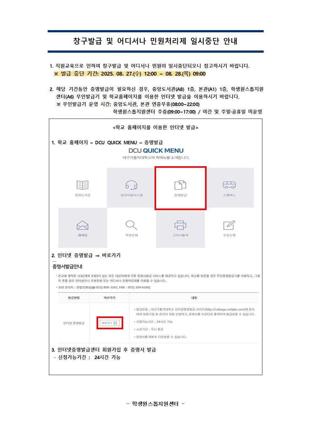 [학생원스톱지원센터] 10월 휴무일 및 증명발급 안내